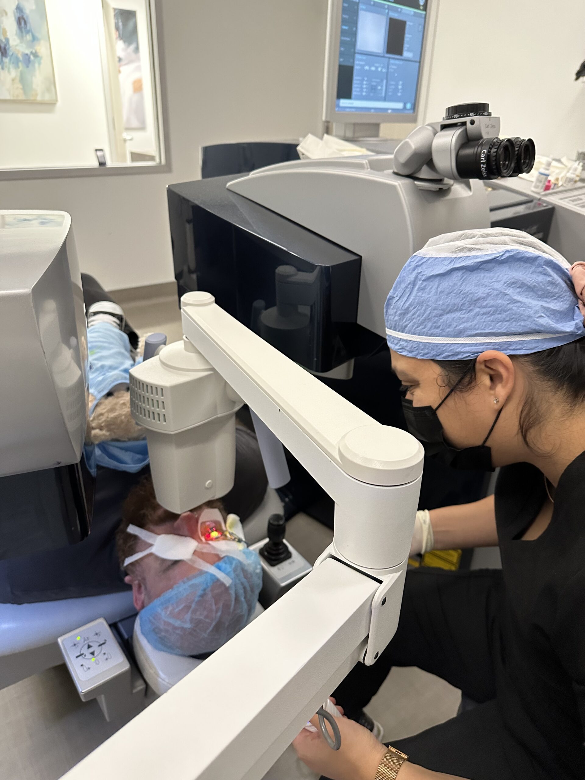 Our ophthalmologist uses the Zeiss SMILE Laser VM800 (she was California’s first), femtosecond lasers for precise corneal tissue work, and the ORA System for real-time surgical measurements. For dry eye treatment, the practice offers Lumenis IPL, BlephEx, and TearCare systems for comprehensive relief.